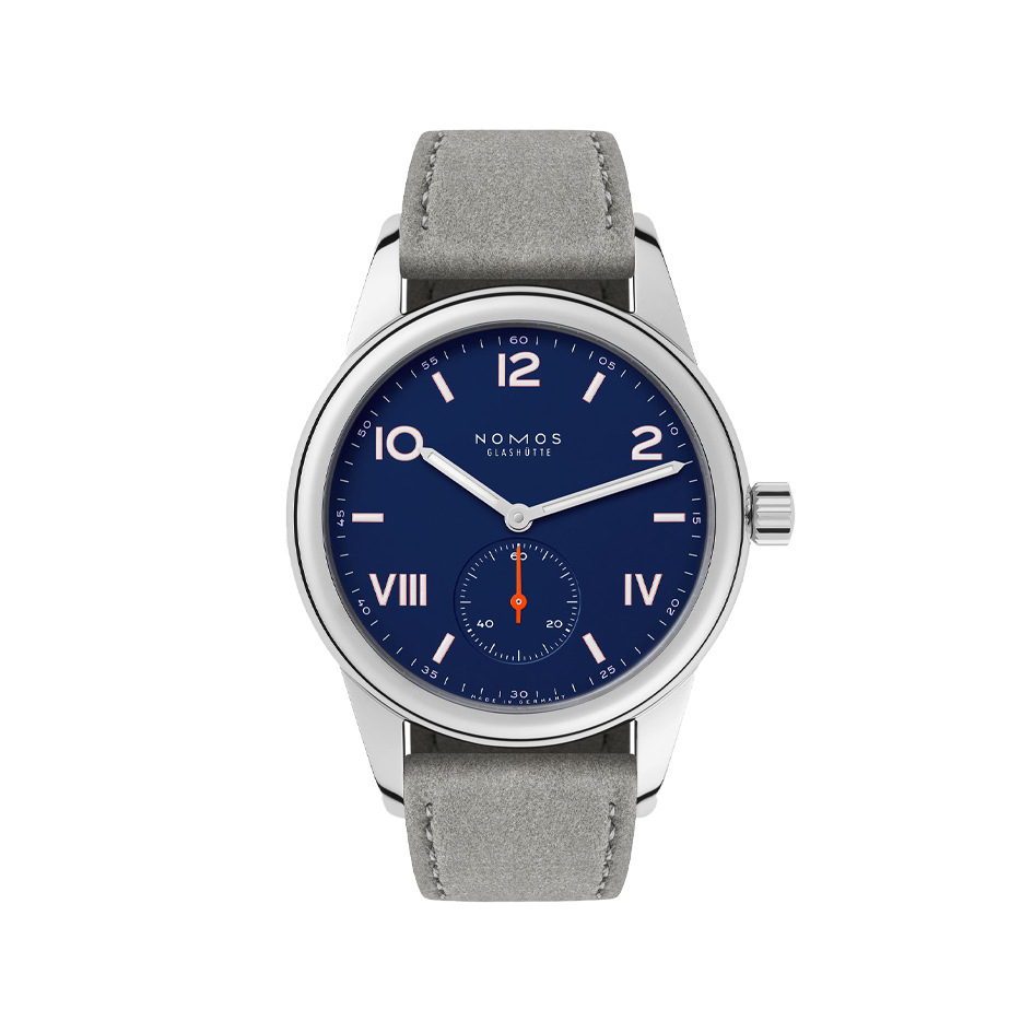 ساعت نوموس کلاب کمپوس نایت اسکای (Nomos Club Campus 719) یکی از مدلهای جوانپسند و مدرن برند آلمانی Nomos Glashütte است. این ساعت با قاب ۳۶ میلیمتری از استیل ضدزنگ و صفحهی آبی تیرهی مات، ترکیبی از سادگی و انرژی معاصر را ارائه میدهد. اعداد نئونی و شبتاب به همراه ثانیهشمار نارنجی در سابدایال پایین صفحه، جلوهای پویا و اسپرت به آن بخشیدهاند. موتور دستی Alpha ساخت نوموس با دقت بالا و طراحی بند جیر طوسی، حس اصالت و کیفیت آلمانی را بهخوبی در این مدل منعکس میکند.